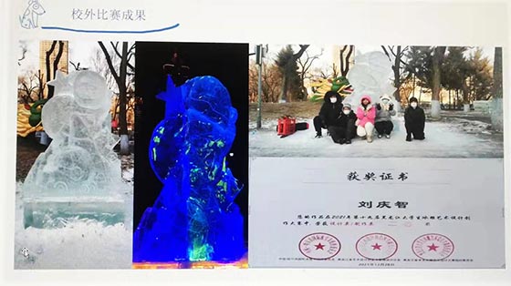 影视动画与服装系20级动漫专业刘庆智同学的冰雕作品及证书