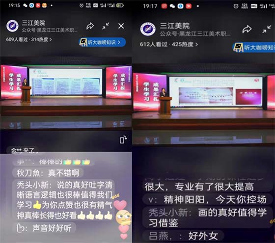 黑龙江三江美术职业学院第四期学生学习成果汇报会于3月22日在哈尔滨教学实习基地演播大厅举行。学院院长王英海、教务处处长马兆玉出席本次会议。