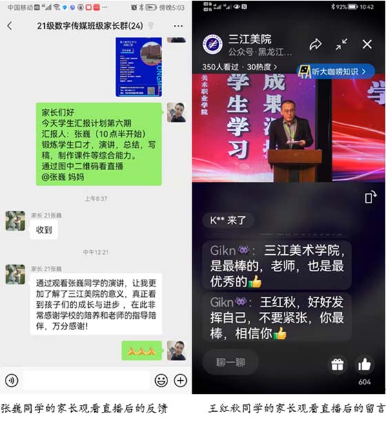 尹思淼的家长在观看直播后留言说:“感谢学校对尹思淼的栽培,看完直播后我觉得咱们学校的师资力量和学校环境都是非常适合孩子的学习和生活的。孩子在学校有很多不足的地方,希望老师们多多指正,多多关照。也感谢学校这么看中我家孩子,给他这样一个展示自己的机会。”