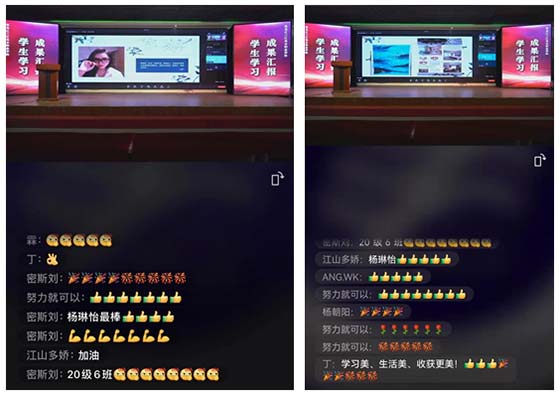 王羿涵同学的家长在观看直播时留言说:“首先感谢学校给孩子上台的机会, 让孩子有锻炼的机会。看到孩子在台上侃侃而谈和展示作品的时候,作为家长心里无比的欣慰,这和老师的辛勤付出是分不开的。非常感谢学校搭建这个平台!感恩老师的辛苦付出,让孩子有今天的成长!从欣赏中得到快乐,从学习中得到知识,从鼓励中增加友情!希望学校每个月都给孩子一次汇报的机会,让孩子知道有什么不足,努力学习,让孩子们成长的更快!”