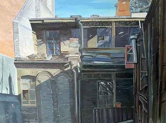 ▲ 管梓林同学的油画作品《民居》