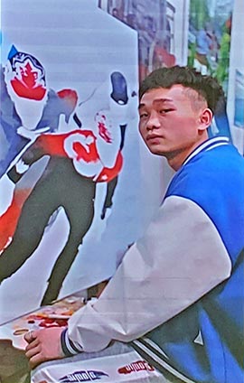 作为五年一贯制的学生,管梓林同学平时的学习十分努力,在台上的表现也很大方。他在现场展示了许多油画作品,这些作品都有他自己独立的创作想法,而且能把它在现场讲解出来。管梓林同学不仅在专业上很优秀,在其他方面也是多才多艺。