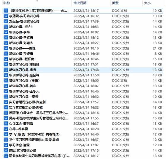 实习是职业教育重要的教学环节,既是专业学习和技术技能训练的必备途径,也是锤炼意志品质、提前熟悉岗位、引导融入社会的重要方式,我院一直高度重视、规范管理。针对《规定》与王英海院长参加培训会后的工作部署,教务处特拟定《黑龙江三江美术职业学院落实实习管理新规工作计划》,立刻摸底排查正在实习的19级学生在实习中是否存在《规定》中涉及的问题。为切实的观测到每一个实习相关工作教师是否认真参加此次培训,并集思广益,为学院实习管理工作献计献策,教务处要求所有参加培训教师提交了《培训心得》。