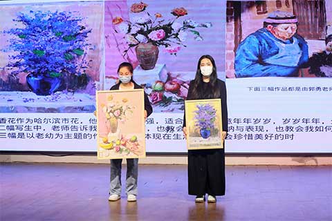 ▲ 刘星的同学们上台展示刘星的作品