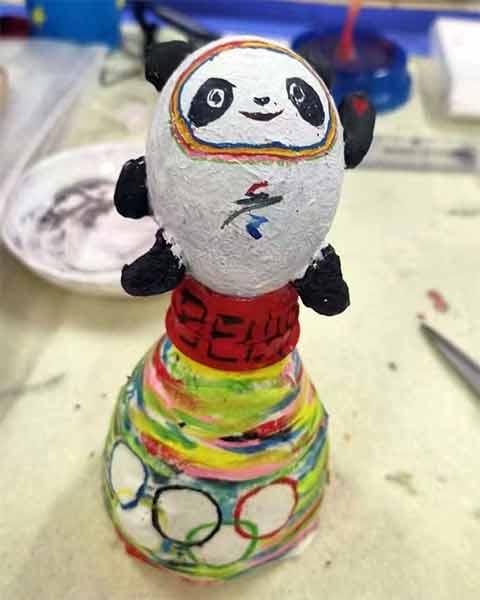 ▲ 刘星同学制作的工艺品《冰墩墩》