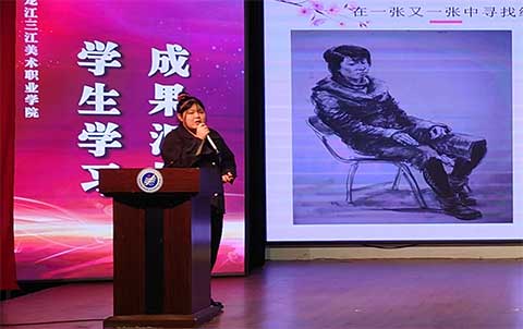 美术教育系杨阳同学在书法、素描、色彩等专业课学习中取得了丰硕成果。在整个汇报过程中,她的台风稳健,语言流畅,声音洪亮。
