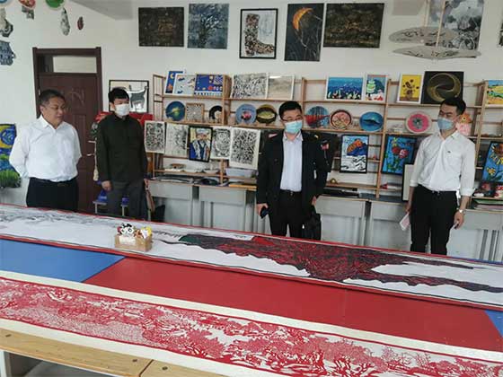 检查组成员还参观了美教系同学们创作的美术、书法和剪纸等艺术作品,对同学们在较短的时间内取得的学业上的进步和作品体现出来的较高艺术水准表示赞赏。希望同学们在“哈尔滨设计之都”建设过程中发挥重要作用。
