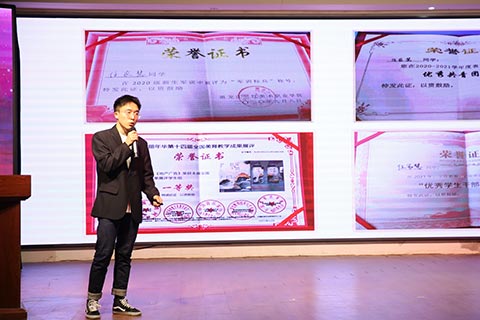 数字传媒系2020级数传专业任佳慧同学在汇报中展示了他本学期在工业设计产品草图、建模,版式设计、包装设计、ui设计方面的创作成果,他能够熟练操作3D打印机,打印自己设计的作品,完全实现了作业变作品、作品变商品的过程。任佳慧同学在本期汇报会评比中被评为第一名。