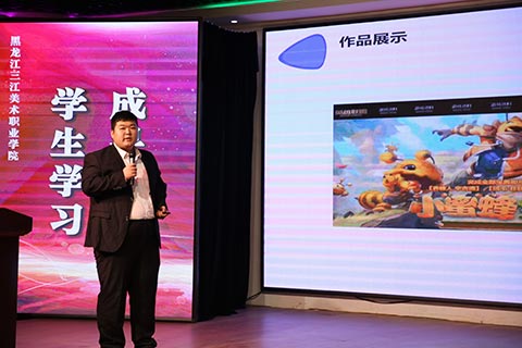 他说:“高鹏同学展示了网页设计与交互设计,他的网页设计作品中注意了网站前台功能设计,包括主题的确定,前台功能设计与管理、留言板、注册、搜索、动态网页等设计与管理,作品相对来说还是非常完整的。看到学生在短短时间内能有这样的成绩,我们企业也希望能与学校多多合作,实现专业共建,共同培养人才,同时也希望三江美院的优秀才子能够到我公司工作。”