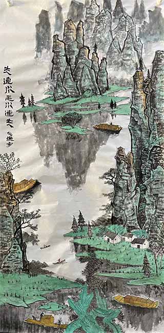 ▲ 文德宇的国画作品《山水相连》