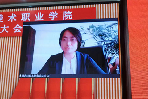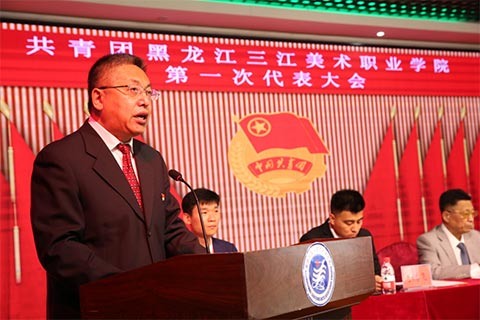 共青团佳木斯市委书记阚国华首先代表共青团佳木斯市委员会对大会的召开表示热烈的祝贺!她说:近年来,黑龙江三江美术职业学院共青团在学院党委和上级团组织领导下在深化青年学生思想引领、开展社会实践和志愿服务活动、服务大学生就业创业、活跃校园文化、加强团的基层组织建设等方面进行了积极探索,取得了显著成效,实现了“理论进现场,项目进课堂”,稳步推进“作业变作品,作品变商品”,使学生在毕业前“掌握创新本领,实现创业回报”,为学生成才就业夯实基础,提供有力保障。阚国华书记在致辞中对广大团员青年提出希望:通过学习党的十九大精神、十九届中央历次全会精神、习近平总书记重要讲话精神,深刻感受党对青年寄予的厚望,深刻认识自身肩负的历史责任和光荣使命,自觉把人生理想融入国家和民族的事业中,坚定理想信念,练就过硬本领,勇于创新创造,矢志艰苦奋斗,锤炼高尚品格,奋发有为地勇做走在时代前面的奋进者、开拓者、奉献者,为实现龙江社会经济的腾飞,为三江美院的跨越发展贡献青春、智慧和力量!