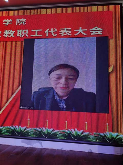 佳木斯市总工会副主席佟玲同志在工作百忙中以视频方式莅临会议,进行指导。在全体代表热烈的掌声中佟玲副主席发表了热情洋溢的讲话,她对三江美院第一次“双代会”的胜利召开表示祝贺,对“双代会”代表和即将产生的工会领导班子提出殷切希望。
