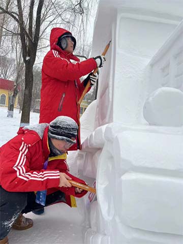 经过4天激烈角逐,大赛于12月21日在太阳岛雪博会落下帷幕。最终王璐老师指导的作品《创意设计之都》获得了优秀奖,张树博老师指导的作品《勇士》和宫青松老师指导的作品《奋进北大荒》双双获得二等奖。