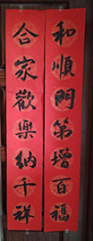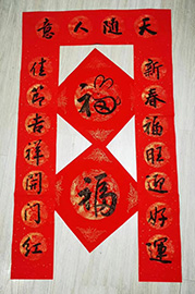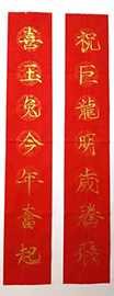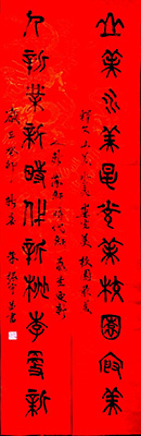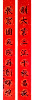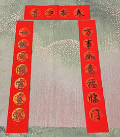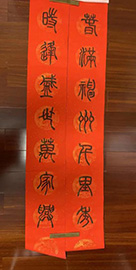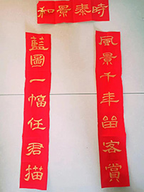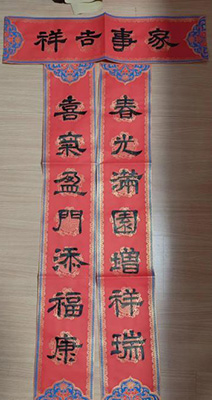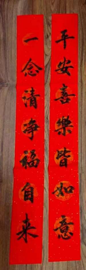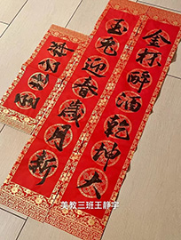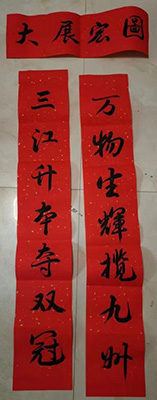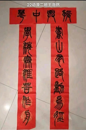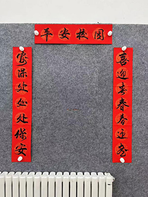 本次展览征稿活动选在学院寒假期间、春节来临之际,得到了广大师生们的积极响应。他们在撰写春联过程中十分注意学习和传承中华优秀传统文化中楹联创作的艺术规律,努力在形式上和内容上追求、探索、创新。如黑龙江省书法家协会会员、黑龙江三江美术职业学院龙美书院执行院长朱振宇,在他的楹联作品“山美水美春光美校园最美,人新业新时代新桃李更新”中,首次运用篆书方式书写并加上注释,使节日楹联的书写既有了书卷气,也加上了书法艺术的辨识功能,书写风格古朴流畅,较好地展示了楹联艺术之美。而获得学生组一等奖的学生单柏林的楹联作品“平安喜乐皆如意,一念清净福自来”端庄、大气、工整,体现了作者平日在书法学习和训练中扎实的基本功,也从侧面体现了黑龙江三江美术职业学院在书法教学课程中的教学亮点。
