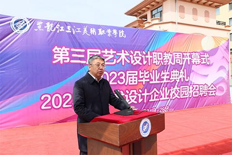 4月24日上午,黑龙江三江美术职业学院2023届毕业生毕业典礼在学院中心广场隆重举行。学院理事长、院长王英海教授,学院党委书记、省政府督导专员王少青同志以及学院领导班子成员、哈尔滨基地师生代表共同参加毕业典礼。