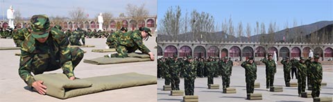 叠军被表演展示了同学们几天来进行内务训练取得的成果。同学们把被子叠成“豆腐块”,平平整整,有棱有角,完全没有学校里被子的臃肿,展示了同学们别样的精神风貌。