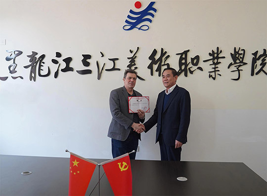 黑龙江三江美术职业学院理事长、院长王英海教授、学院党委书记王少青同志在学院会议室和龙美书院书画室先后会见了德罗兹德•安德烈•尼古拉耶维奇教授及陈凤跃会长等一行。在双方举行洽谈之前,王英海院长首先代表学院对俄罗斯艺术家和陈凤跃会长等一行表示衷心的欢迎,对中俄双方在艺术教学、留学交换留学生等方面开展合作表示积极支持,在双方的交流和洽谈过程中,他特别提出双方要创造条件在三江美院举办“俄罗斯安德烈绘画教学班”的设想,德罗兹德•安德烈•尼古拉耶维奇教授对此项设想表示赞成和感谢。在友好和谐的气氛中,学院理事长、院长王英海教授代表学院向德罗兹德•安德烈•尼古拉耶维奇教授颁发了《黑龙江三江美术职业学院客座教授聘书》,德罗兹德•安德烈•尼古拉耶维奇教授愉快地接受了聘请,在场的所有人用热烈的掌声见证了这个庄严而充满信任和友情的时刻。