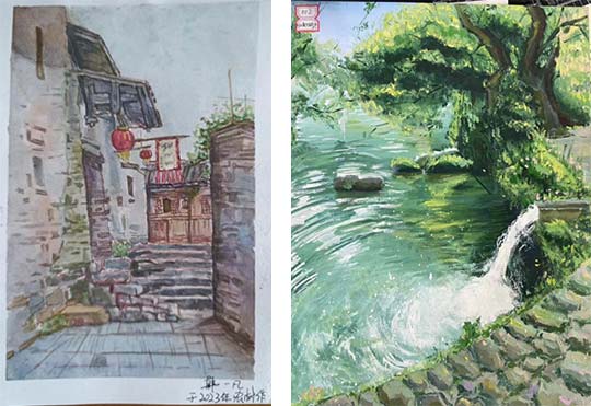 ▲韩一凡同学创作的《宏村小巷》 ▲张荣军同学创作的《宏村街景》