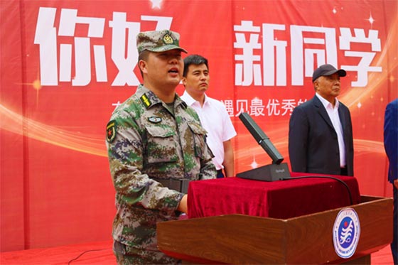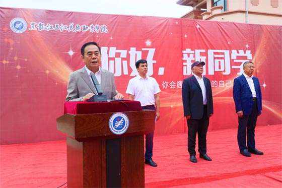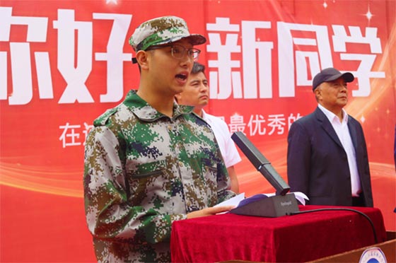 环境与艺术工程系新生王泰森代表新生发言,他表示,作为新一代“龙美学子”,我们怀揣着对未来生活的美好期望和无限遐想,跨入了三江美院,在这一崭新的舞台上,开始放飞新的希望,接受新思想的洗礼。从今天起,我们将要经历一场军训的洗礼和磨练。我们将要学会乘风破浪,勇敢担当,开启人生的精彩华章!