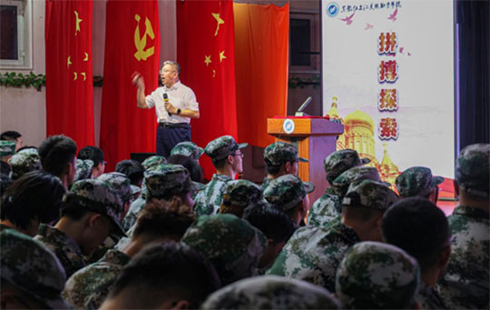 王少青首先带领全体2023级新生回顾了红色中国的过去,展望了现在和未来,并从中国革命的青年先驱、新中国的青年建设者、新时代的青年生力军三个方面进行了全面讲述。