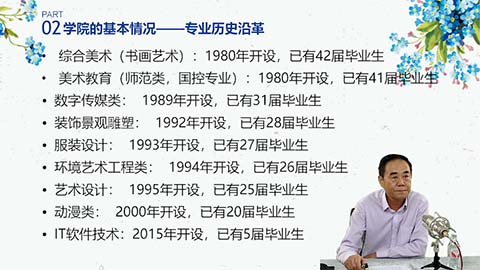 王英海院长首先向老师和同学们介绍了学院的基本情况并讲述了学院的历史沿革。从1980年10月2日至今,43年的建校史使学院的底蕴沉稳深厚,发展到如今,成为黑龙江省唯一的、国家承认的普通高等美术学院。三江美院共有四系三部两基地,一直致力于培养实用型美术人才,提高教师素质,提升教学质量,不断优化学苗,指导和帮助毕业生实现就业、创业。