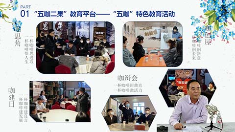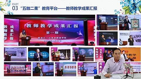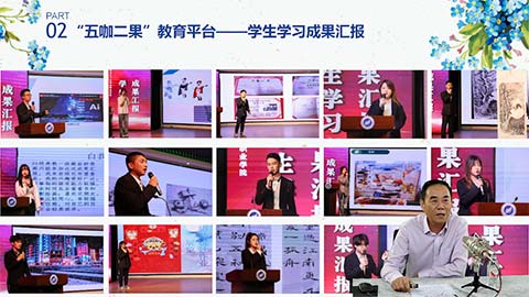 王英海院长还介绍了“五咖二果”特色教育平台。“五咖”特色教育活动课,分别是咖思角,主旨是“一杯咖啡思进取,一杯咖啡悟人生”,由我院名师、学者和学生面对面交流;咖创屋,主旨是“一杯咖啡创新意,一杯咖啡创未来”,由我院历届获奖大学生主持交流学习;咖建日,主旨是“一杯咖啡建良言,一杯咖啡促发展”;咖辩会,由院级领导接待学生谏言献策,主旨是“一杯咖啡辩曲直,一杯咖啡激活力”,由学生会定期组织;咖自省,主旨是“一杯咖啡自检行,一杯咖啡省吾身”,是学生们自我反省和进步的平台。以上“五咖”活动已经深深融入到美院学生的学习和生活中,让学生在玩中学,勇于谏言,敢于承担。同步进行的还有“二果”:一果是学生学习成果汇报,每周二14:00通过学院微信公众号直播,所有在校大学生轮流参加汇报,邀请家长、企业负责人参加评价;二果是教师教学成果汇报,每月一期,所有教师轮流参加汇报,要求教师动手实践、讲述案例项目、分享科研成果。