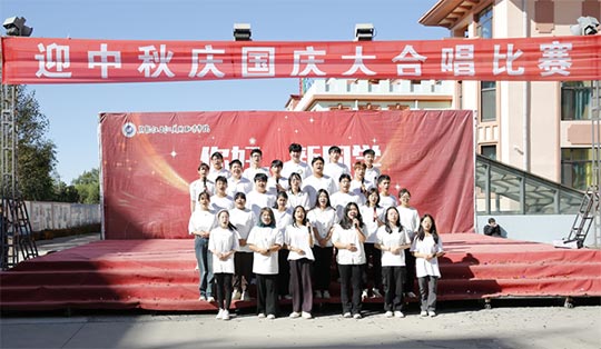▲全媒体广告策划与营销专业名师工作室代表队合唱歌曲《国家》、《稻香》