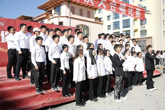 ▲服装设计名师工作室代表队合唱歌曲《团结就是力量》、《没有共产党就没有新中国》