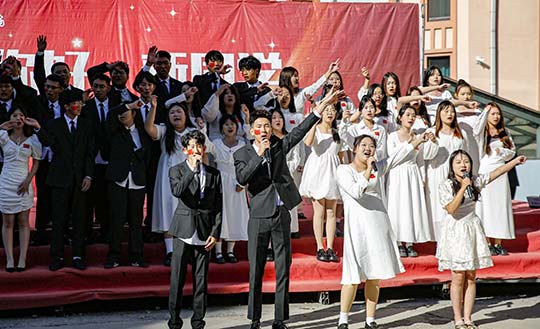 ▲专升硕国际学部代表队合唱歌曲《我相信》、《奇迹再现》