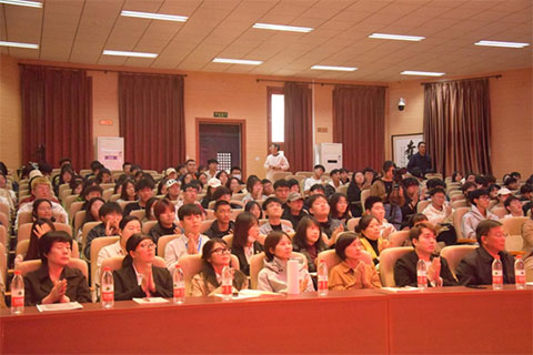下午2时,宽敞明亮的报告厅灯火辉煌,气氛热烈,座无虚席。三江美院副院长金红炜教授首先致欢迎辞,全体师生以最热烈的掌声欢迎全国自强模范、三江美院优秀毕业生夏虹,全国自强模范纪德勇,北京榜样李辉来到主席台。随后,学生代表向三位自强模范献花,领导及师生代表上台合影留念。
