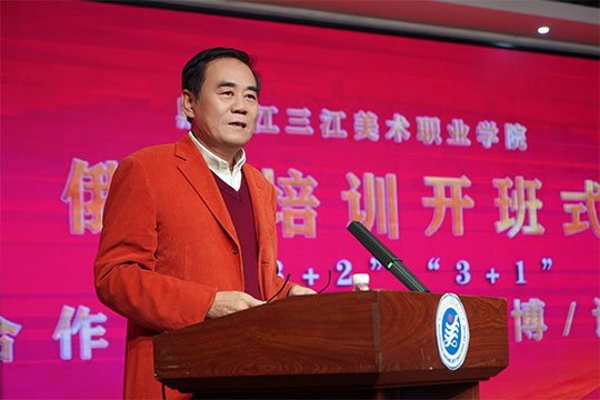 12月8日下午,黑龙江三江美术职业学院首期保送赴俄攻读硕士博士学位教师俄语培训开班式及中俄“ 2+2”“3+1”合作办学说明会在哈尔滨教学实习基地演播厅召开。