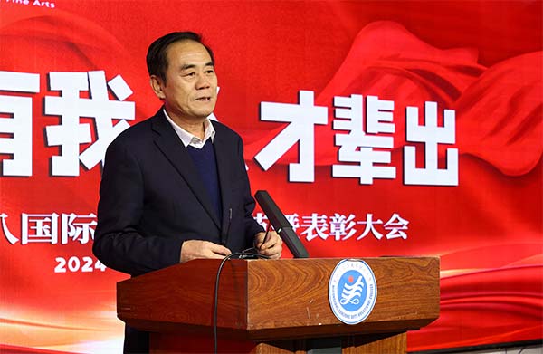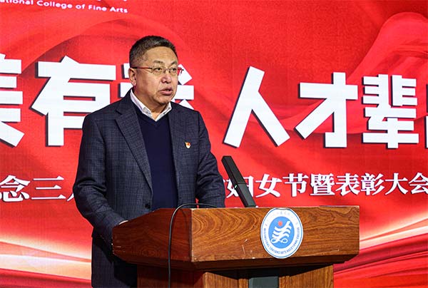学院理事长、院长王英海教授在会上讲话。他代表学院向受到表彰的“最美女教工”表示热烈祝贺,向全院女教工表示亲切慰问。他说,我院女教工占全部教工的56%,实实在在地撑起了美院的“半边天”;可以说,没有女教工的无私奉献,就没有三江美院的今天。