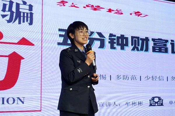 活动开始,松北公安分局中源大街派出所二级警长牟彬彬就“电信诈骗”为大家进行了宣讲,牟警官针对学生群体特点,用新颖活泼的授课方式,结合真实的案例,让学生了解身边常见的诈骗陷阱,生动再现了刷单诈骗、网购诈骗、冒充熟人诈骗等在学生群体中易发的诈骗类型。同时,提醒学生在上网时,一定要提高警惕,不接陌生电话,不点陌生链接,不扫陌生二维码,不下载陌生软件,不透露自己和家庭的相关信息,严禁出售、对外租借银行卡和电话卡,筑牢反诈防线,维护自身合法权益。