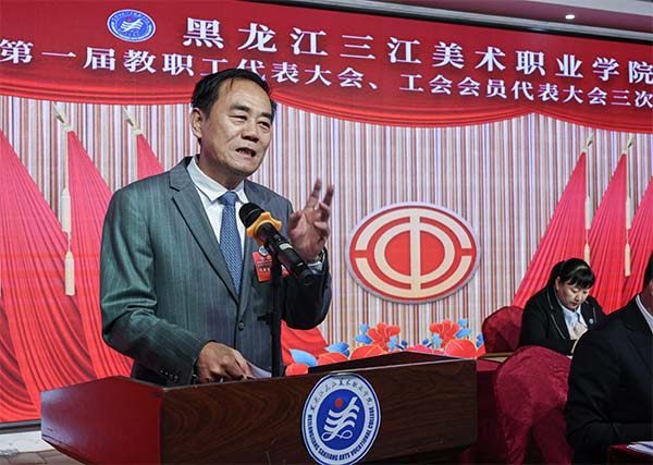 2024年3月29日,黑龙江三江美术职业学院第一届教职工代表大会、工会会员代表大会第三次会议在哈尔滨教学实习基地大礼堂隆重召开。学院领导王英海、王少青、鞠剑锋、梁晓勃、马鸿飞等出席会议,81名“双代会”代表参加会议,部分教职工列席会议。