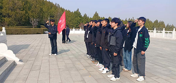在烈士纪念碑前,团干部代表们庄严宣誓。23级6班团支书张子恒领誓,其他团干部代表共同宣誓:祖国今天的繁荣富强美丽是烈士们用鲜血换来的,我们要接过先烈的革命接力棒,在新时代担当使命,让先烈的精神薪火相传,继承先烈遗志,不忘初心,砥砺前行。
