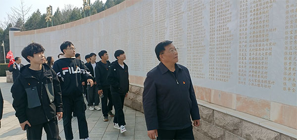 最后,同学们在丁春生书记的带领下,怀着崇敬的心情瞻仰了烈士墙。丁书记为同学们讲解了烈士墙上一些英雄的事迹,同学们听后深受启发和教育。