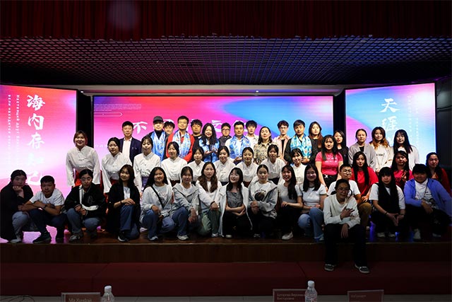 为了回馈三江美院的热情接待和同学们的歌舞表演,俄罗斯留学生也集体演唱了歌曲《善良之路》。演唱完毕,他们向即将给他们授课的中国老师赠送了俄罗斯布里亚特族哈达,以表示他们对于中国老师的祝福之意。