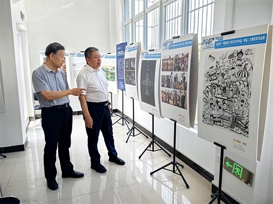 在调研期间,王少青还参观了由三江美术职业学院北京教学实习基地承办的创意中国·优秀创新创意设计作品展。他在北京教学实习基地教师展示的作品前驻足良久,仔细欣赏每幅作品。