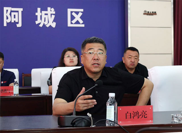 阿城区委副书记、区长白鸿亮在会上表示,黑龙江三江美术职业学院哈尔滨校区项目是第一个落户在阿城区的美术高等院校,对阿城区的建设发展具有重大意义,阿城区委区政府和社会各界都十分重视,同时也对哈尔滨校区项目的建设充满了信心与期待。他希望我院能够充分利用好发展机遇,尽快做好详细建设规划和施工方案,高标准高水平地进行项目建设。白鸿亮区长提出,阿城区相关部门要全力以赴支持三江美院哈尔滨校区项目的建设,把这个项目作为重中之重的工作来抓,贴心做好服务和监督工作,争取尽快结出硕果。