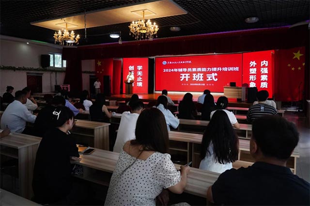 为深入学习贯彻习近平新时代中国特色社会主义思想和党的二十届三中全会精神,扎实推进学生工作队伍职业化、专业化建设,不断提高辅导员政治素养、理论水平和业务技能,8月13日上午,黑龙江三江美术职业学院举办2024年辅导员素质能力提升培训班。学院党委副书记、工会主席、学生处处长马鸿飞出席开班仪式,学生处学生科科长张宇主持开班式。