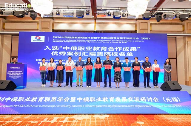 2024 Education Plus国际职业教育大会暨产教融合博览会于9月11-14日在无锡举行,黑龙江三江美术职业学院在此次大会荣获“共建‘一带一路’职业教育合作典型院校”称号,我院对俄合作《抓住机遇,加强对俄民心相通—对俄合作办学“四步曲”》入选“中俄职业教育合作成果”优秀案例汇编集。