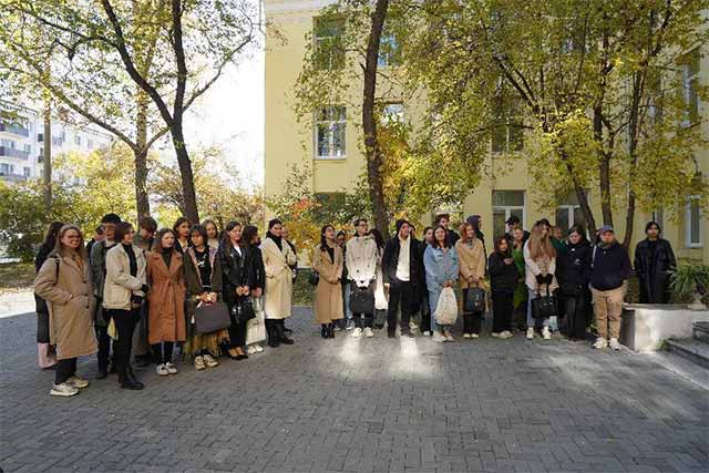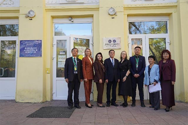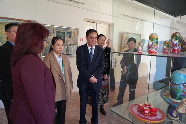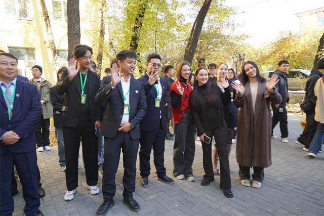 俄罗斯后贝加尔边疆区赤塔市副市长埃米赫,俄罗斯后贝加尔国立大学国际事务副校长古谢夫斯卡娅,俄罗斯后贝加尔边疆区俄中友好协会会长卡尔巴郭娃,黑龙江三江美术职业学院理事长、院长王英海教授,副院长金红炜教授以及后贝加尔国立大学师生代表共同见证了我院职教出海的重要时刻。