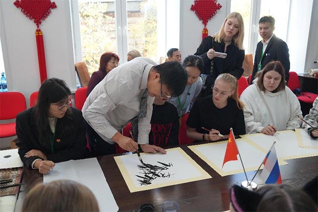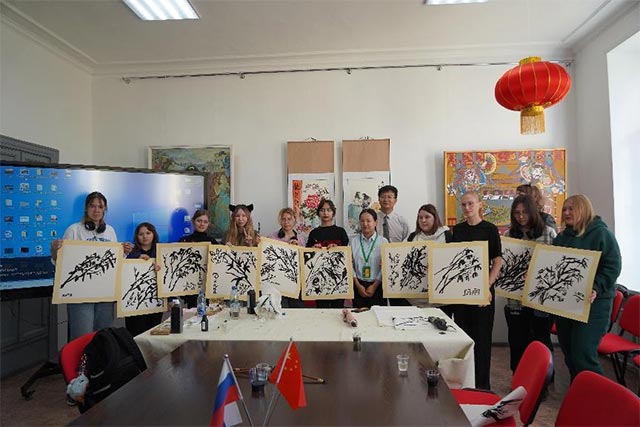 截至目前,中国现代艺术创意中心暨“俄罗斯开物工坊”已经累计培养俄罗斯学生120人。未来,三江美院将在俄罗斯开物工坊的基础上,在俄罗斯后贝加尔国立大学成立具有学历教育功能的中国现代艺术创意学院,开发编著“汉语+书画艺术、汉语+AI创意、汉语+虚拟现实创意、汉语+人工智能创意、汉语+数字技术创意”等5本实用教材。培养更多掌握中国书画艺术和先进创意设计技术、熟悉行业标准的高素质技术技能人才,为中俄两国的文化交流和培养创新型高技能人才贡献三江美院力量。