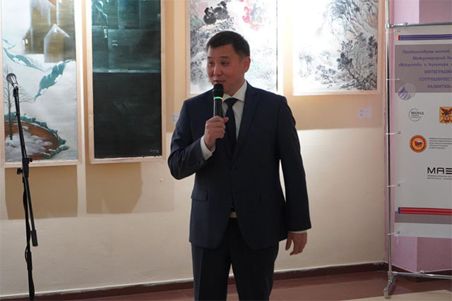 俄罗斯后贝加尔边疆区副州长巴托木古耶夫致辞,他指出,近年来,俄中两国人文交流蓬勃发展,合作领域覆盖全面、合作内涵丰富且形式多样。经过两国政府和社会的共同努力,两国人民友谊不断深化,世代友好理念深入人心。人文交流已经成为发展俄中关系、促进民心相通的重要桥梁和支撑。中俄关系树立了大国、邻国相互尊重、坦诚相待、和睦相处、互利共赢的典范。此次2024年中俄青年艺术家作品国际展览的成功举办就是俄中两国文化交流的最好体现。顺应了国际社会增进文明对话交流、促进文化繁荣发展的客观需求,是推动构建人类命运共同体的生动实践。