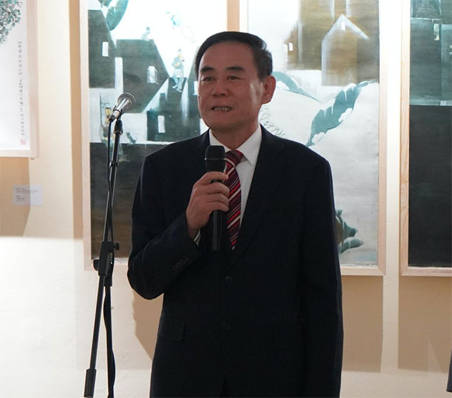 俄罗斯外交部驻赤塔市代表阿列玛索夫首先致欢迎词,他首先欢迎不远千里来到俄罗斯赤塔市的中国艺术家们,他说,欢迎你们把美术设计作品带到俄罗斯进行交流展示,这会让更多俄罗斯热爱美术作品的人学习到更多的创意美术作品和前沿的设计思路。在俄中建交75周年的辉煌时刻,两国不仅在政治、经济领域深化合作,更在文化艺术的广阔天地里播种友谊的种子。预祝本次中俄青年艺术家作品国际展览取得圆满成功。