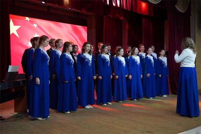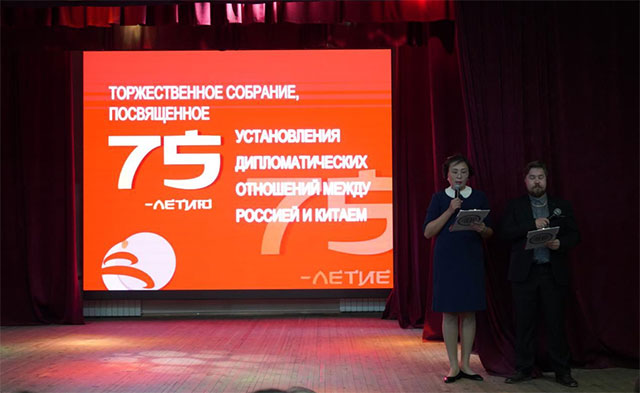 开幕式结束后,现场所有人员走进后贝加尔国立大学演播大厅,观看庆祝“中俄建交75周年”为主题的文艺演出。文艺演出旨在通过艺术的形式,歌颂中俄两国人民之间的友谊,共同增进两国和两国人民之间的深厚情感。