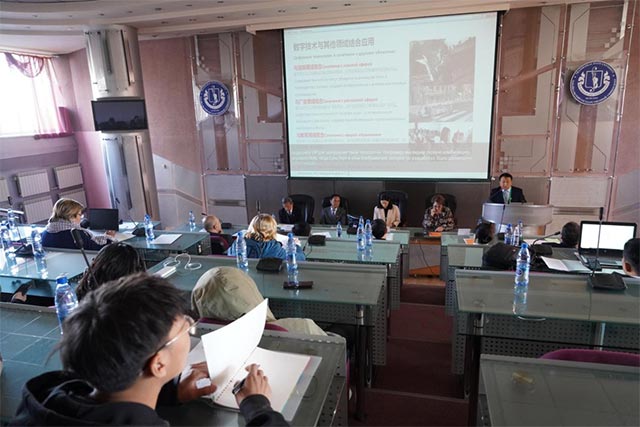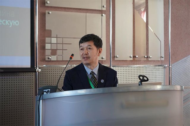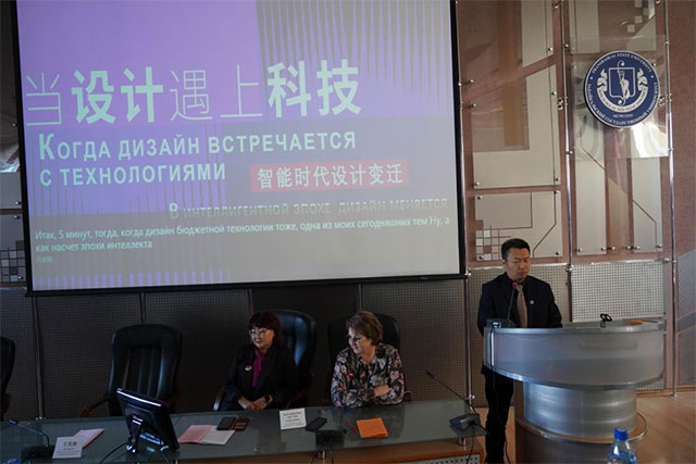 俄罗斯后贝加尔国立大学校长马尔腾诺科致辞,他首先感谢三江美院的专家学者不远千里来到后贝加尔国立大学为我校学生带来最前沿的理论知识。俄中新时代全面战略协作伙伴关系保持高水平运行,两国人文交流有声有色。三江美院与后贝加尔国立大学建立校际合作为双方共同举办研讨会、展览、开物工坊等搭建平台,让双方人民友好感情进一步升华,也彰显了两国地方文化教育合作的美好前景。希望我们通过今天的交流研讨,探讨当前教育发展改革背景下,培养学生综合能力、提升学生国际竞争力的方法与路径。