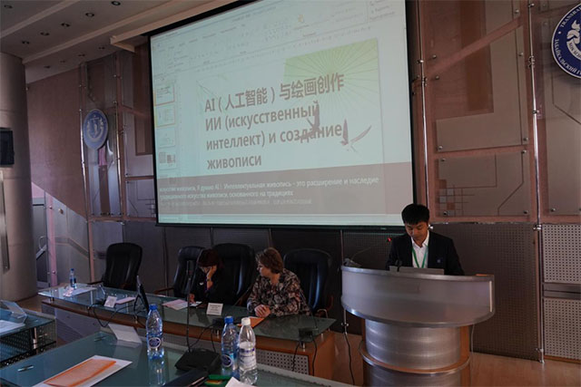 后贝加尔国立大学教授、博士生导师、文化学学术答辩委员会主席高波耶娃教授高度赞扬了三江美院学者团队前卫的学术见解和广博的知识储备。特别是吴志民教授、赵少鲁博士、郭勇主任等专家学者的主旨演讲紧扣AI主题,结合自己专业特点深度剖析,不仅让与会者感受了思想碰撞,更具有很强的实践指导意义。