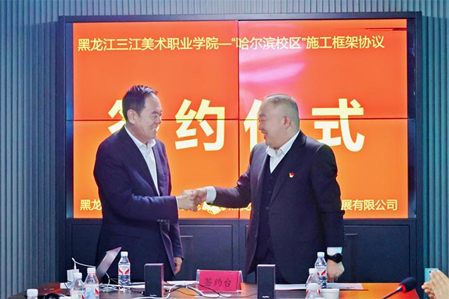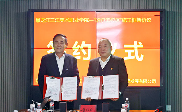 10月28日下午,黑龙江三江美术职业学院与黑龙江星海建设工程发展有限公司签署三江美院哈尔滨新校区建设项目施工框架协议。此举标志着三江美院的办学事业即将迎来高质量发展的新阶段。