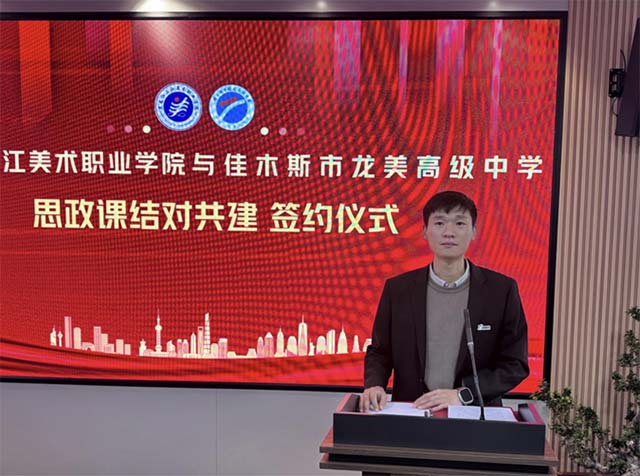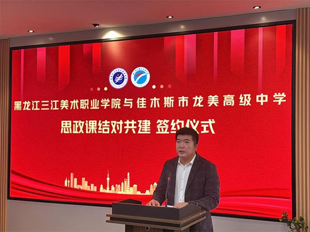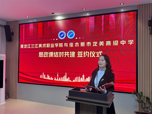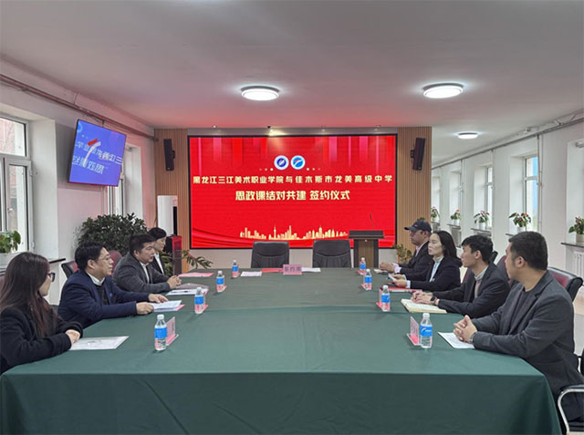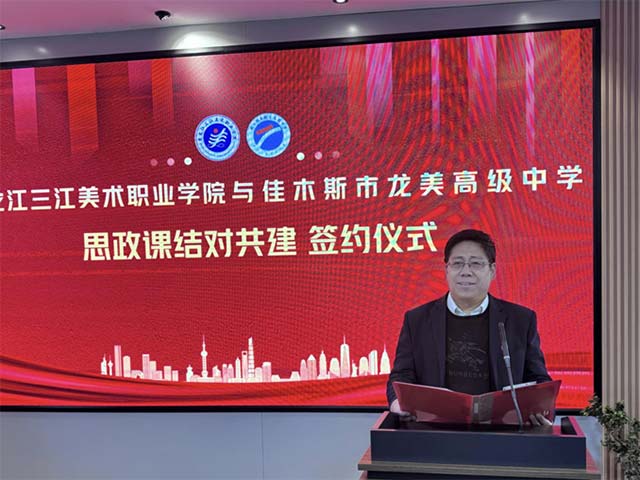 在双方领导的见证下,张宇主任与龙美高中副校长屠瑛共同签署了《黑龙江三江美术职业学院与佳木斯市龙美高级中学思政课结对共建协议》。本次签约标志着两校在思政课一体化建设方面迈出了实质性的一步。两校将以此为契机,持续深入贯彻落实习近平新时代中国特色社会主义思想,聚焦立德树人根本任务,准确把握新形势下思政课结对共建帮扶工作的新目标新要求,进一步补齐短板、巩固特色,全面提升教学科研水平,扎实推进思政教育高质量发展。